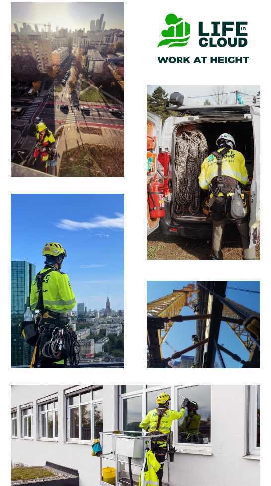 Life in Cloud to profesjonalna firma alpinistyczna o ugruntowanej pozycji na rynku. Wykonujemy prace alpinistyczne i wysokościowe na terenie miasta Warszawa i całego województwa mazowieckiego. Realizujemy również zlecenia w innych regionach kraju i Europy. Jako doświadczeni i wyspecjalizowani alpiniści przemysłowi świadczymy szeroki wachlarz usług wysokościowych z zastosowaniem technik dostępu linowego. Dla każdego zlecenia dobieramy adekwatne zestawy lin, uprzęży, systemów asekuracji, zjazdowych i kotwienia, gwarantując stabilną realizację prac alpinistycznych zgodnie z ustalonym harmonogramem. W razie potrzeby korzystamy również ze specjalistycznych urządzeń podnoszących. To pozwala nam na kompleksową obsługę każdego zlecenia na prace alpinistyczne.Jako firma alpinistyczna jesteśmy znani z profesjonalnego i indywidualnego podejścia do Klienta. Obsługujemy różne grupy odbiorców: osoby prywatne, firmy, instytucje, zarządców nieruchomości i inne podmioty. Oferujemy współpracę regularną, polegającą na wykonywaniu cyklicznie powtarzających się prac wysokościowych, jak również podejmujemy się jednorazowych zleceń o zróżnicowanym profilu i wytycznych kontrahenta. Zakres świadczonych prac i usług alpinistycznych każdorazowo dostosowujemy do konkretnych potrzeb. Posiadamy kompetencje umożliwiające profesjonalną realizację szeregu prac związanych z: